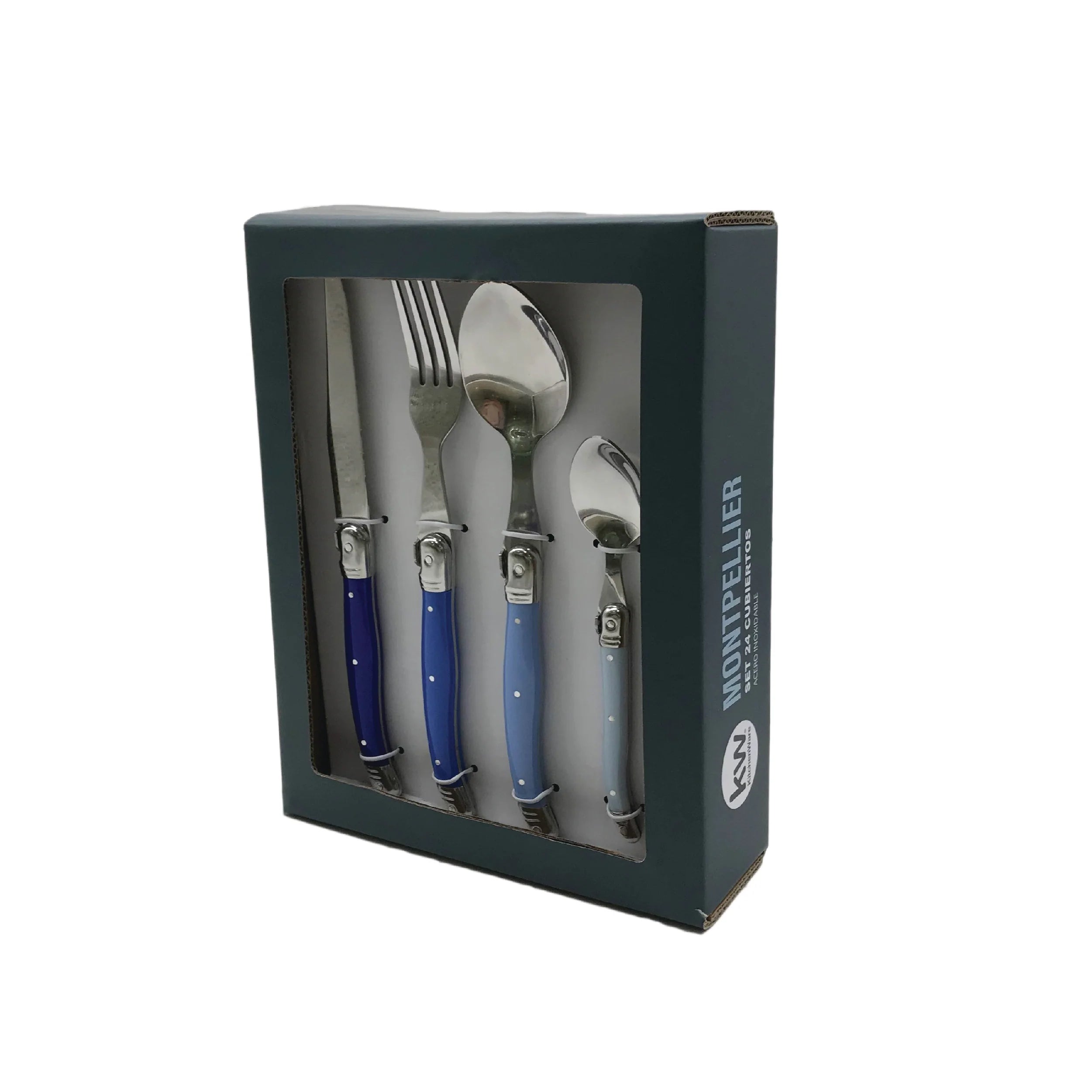 Set de cubiertos 24 piezas color azul (tenedores, cuchillos, cucharas y cucharitas)
