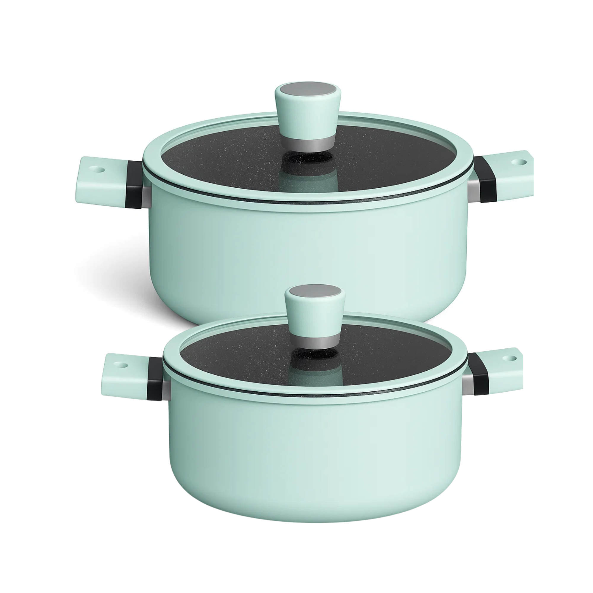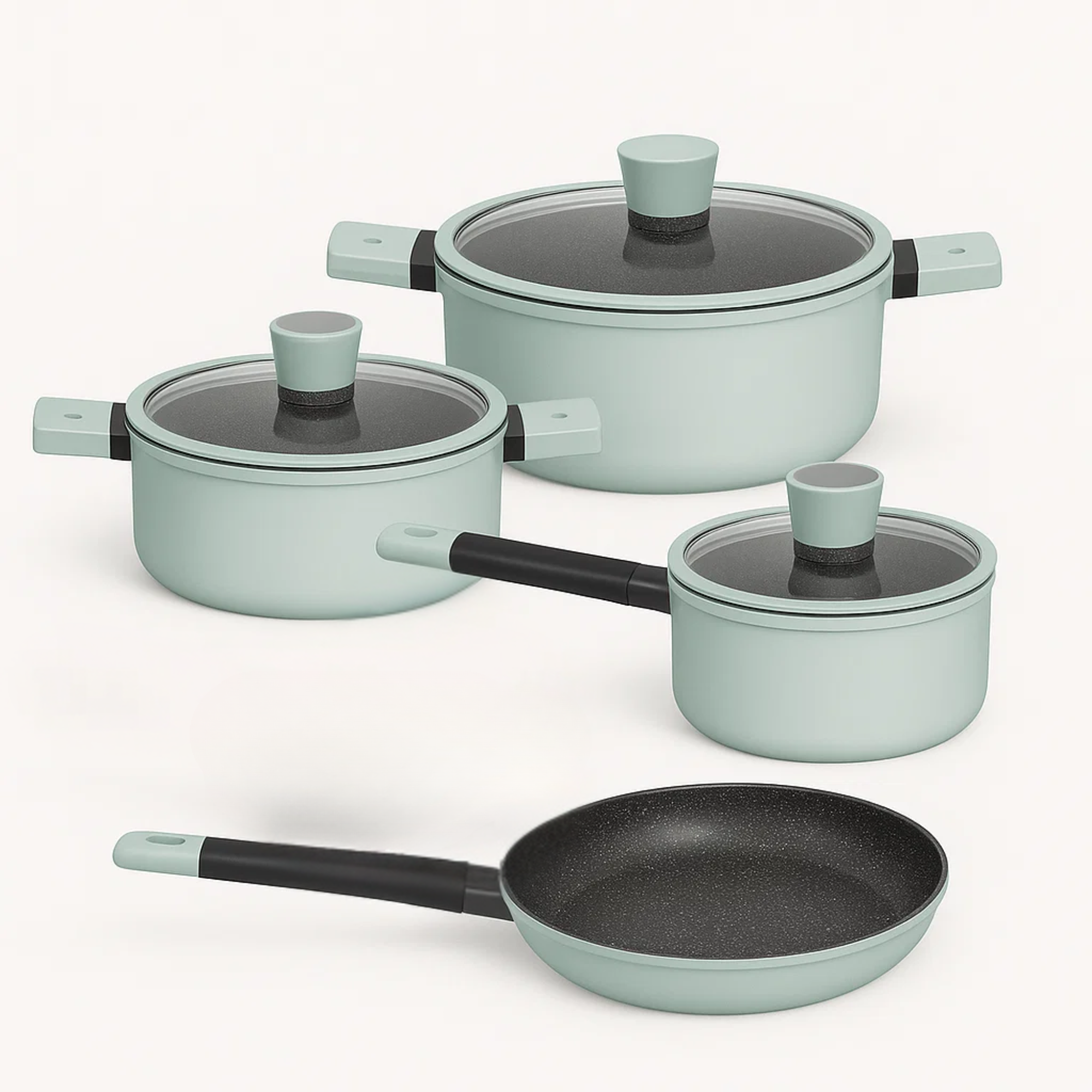 Equipa tu cocina con un combo completo y de alta calidad. La batería Cerámica soho está fabricada en aluminio forjado con recubrimiento cerámico antiadherente, ideal para cocinar con menos aceite, evitar que los alimentos se peguen y lograr una cocción pareja en todo momento.
