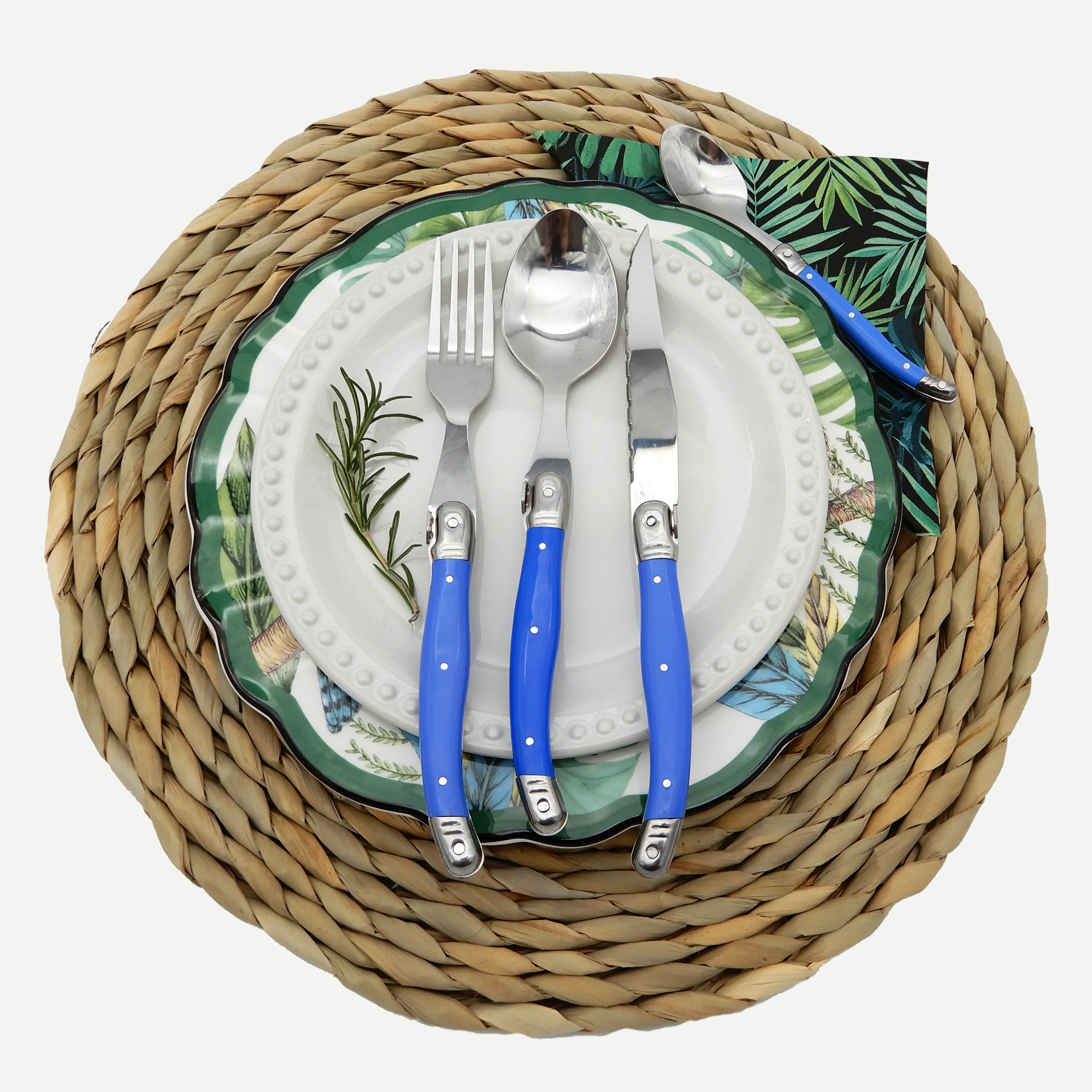 Set de cubiertos 24 piezas color azul (tenedores, cuchillos, cucharas y cucharitas)