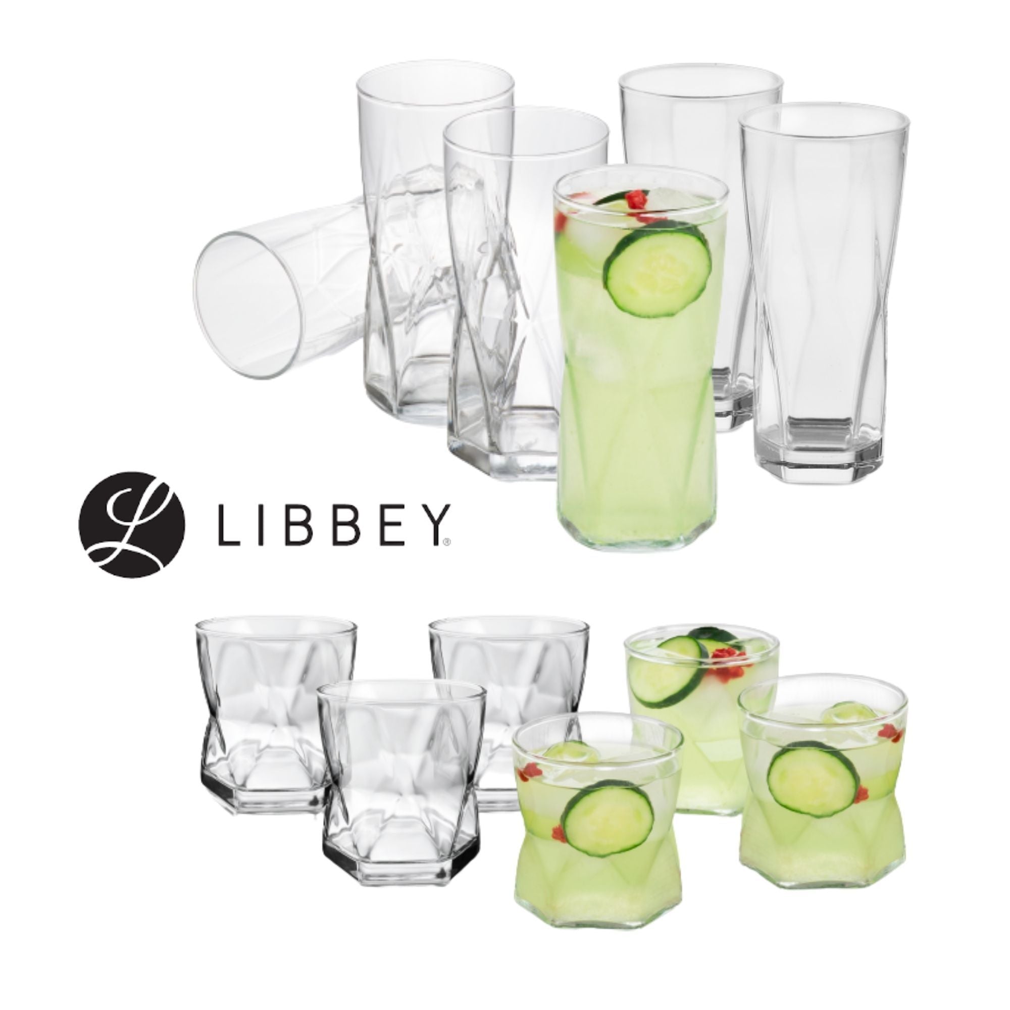 Juego De 12 Vasos En Vidrio Rombus 6 Altos 465 Ml Y 6 Bajos 352 Ml