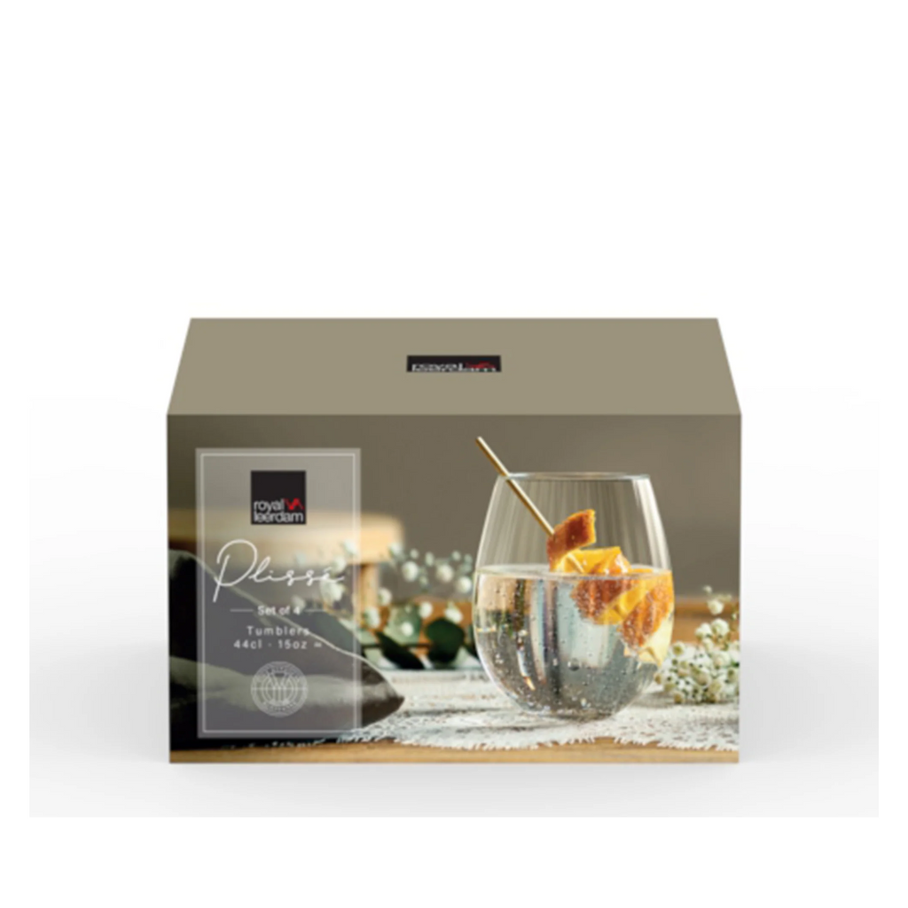 Set de 4 Vasos Cortos Plissé 44cl (15oz) – Elegancia y Estilo en Cada Sorbo