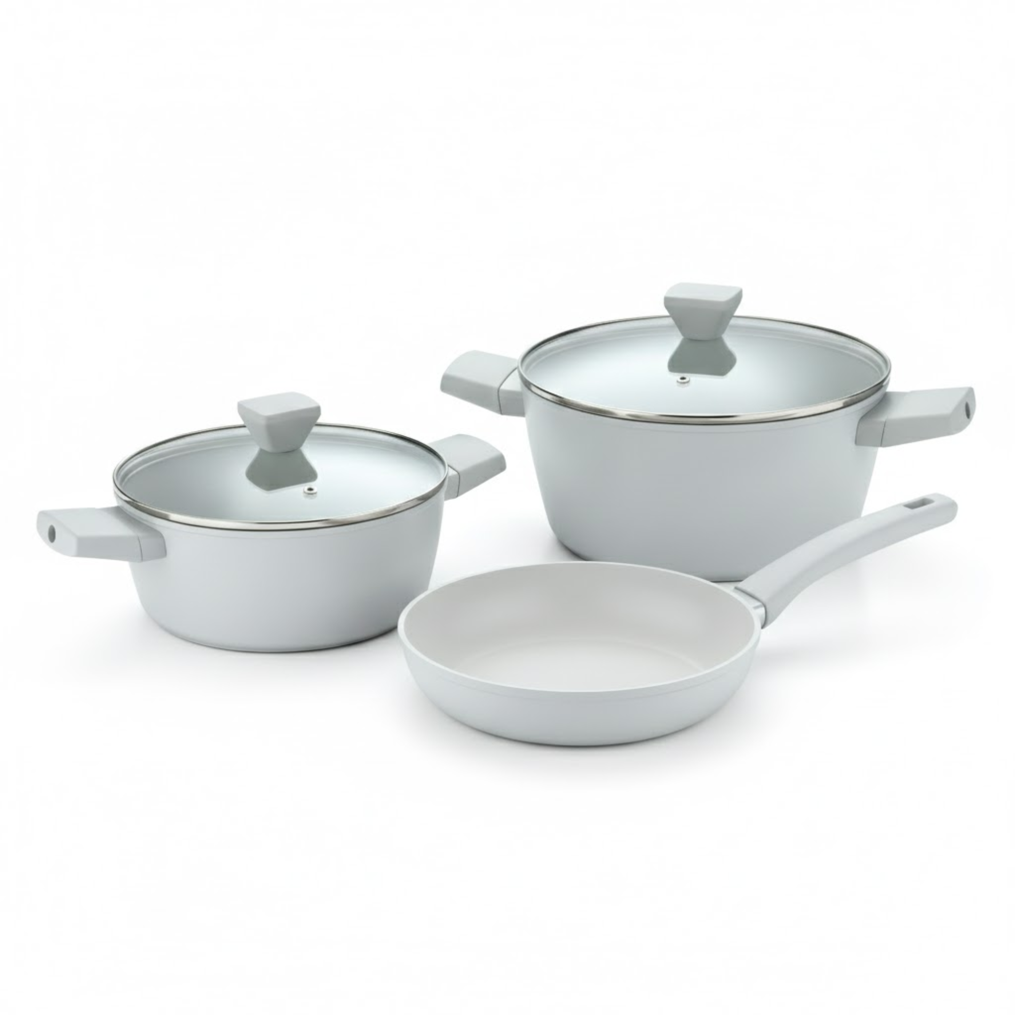 SET DE OLLAS Y SARTEN X 5 PIEZAS CEMENTO (SARTEN 24CMS Y OLLA 24 Y 28CMS)