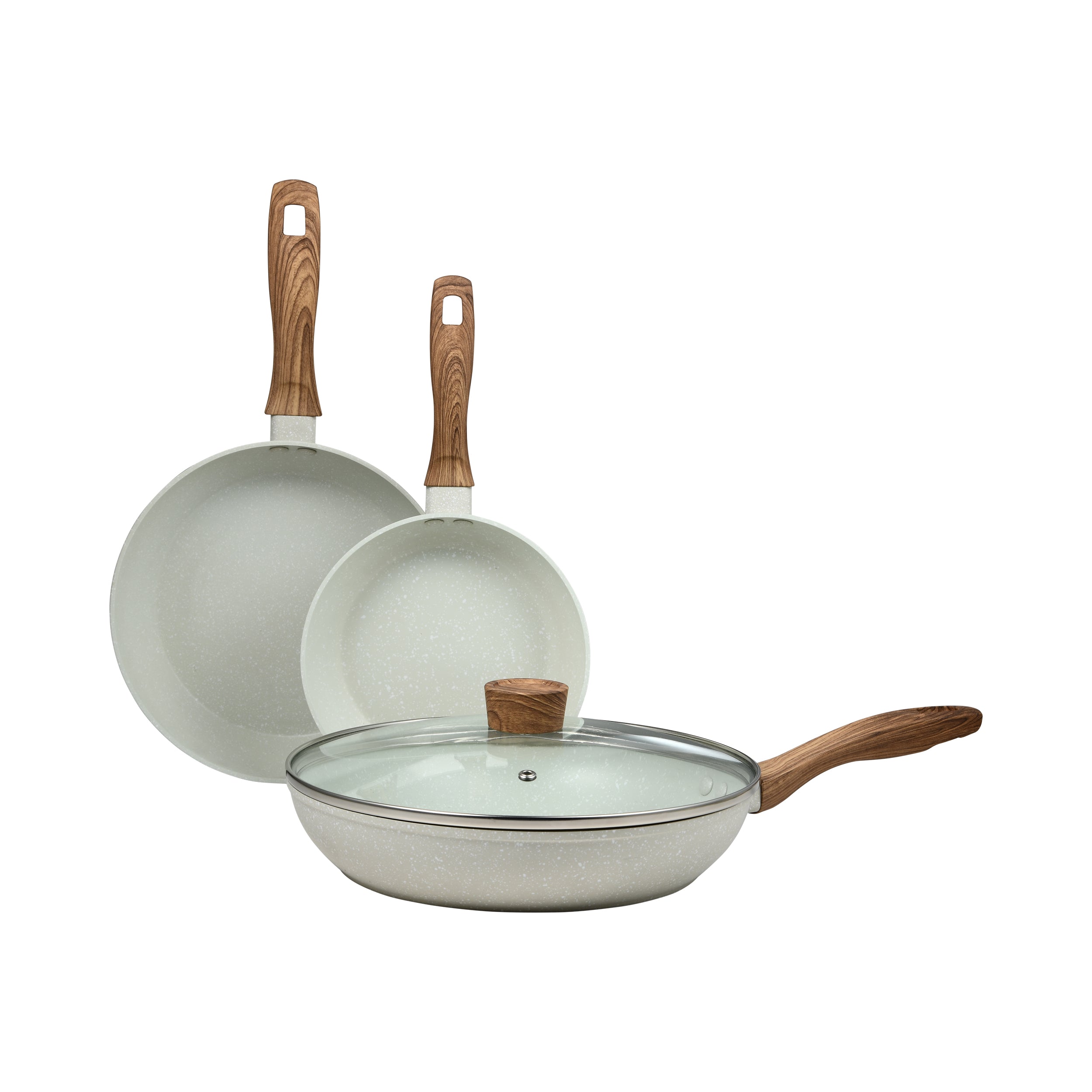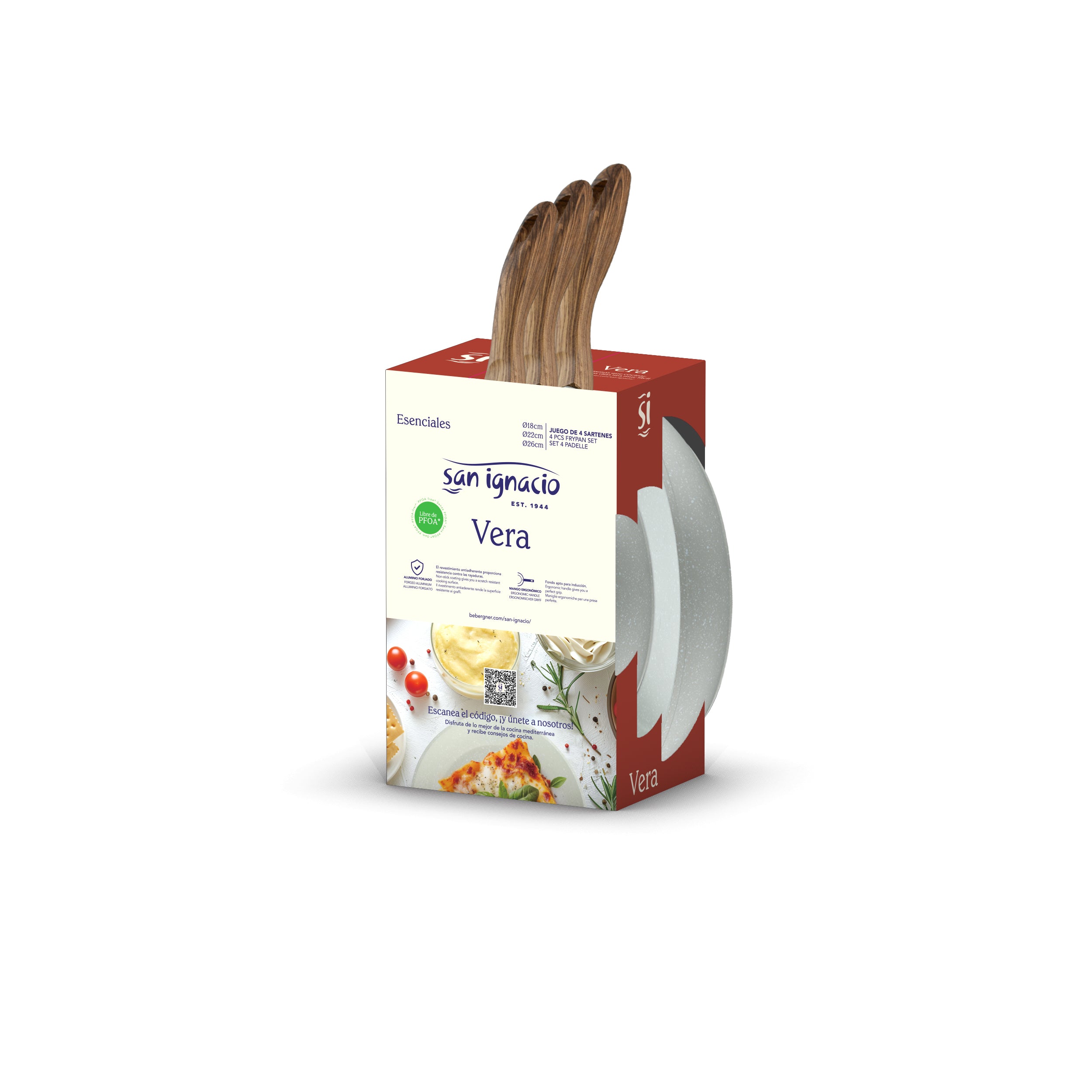 Set de Sartenes Vera San Ignacio 4 Piezas en Aluminio Forjado – Antiadherentes (18/22/26 cm + Tapa de Vidrio)