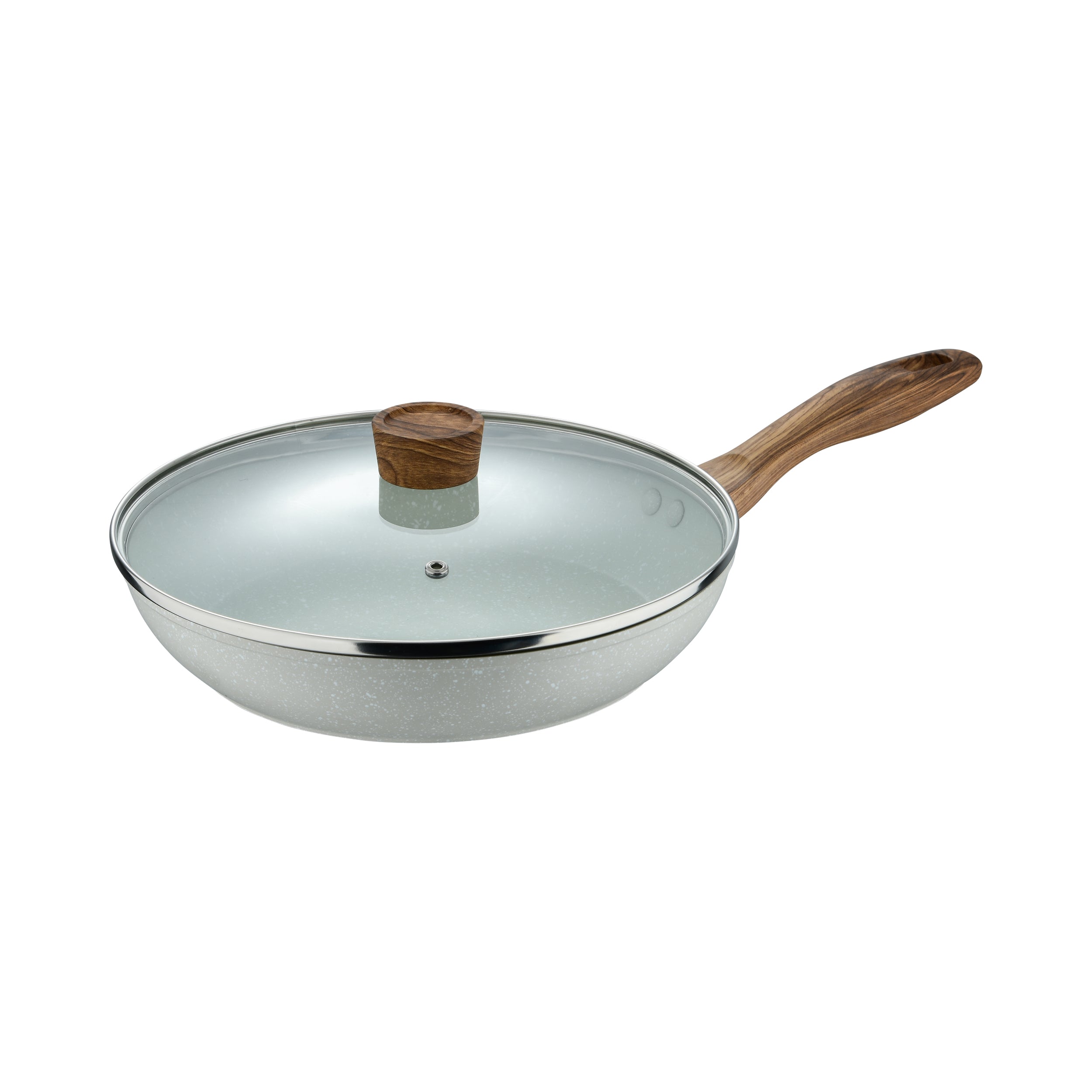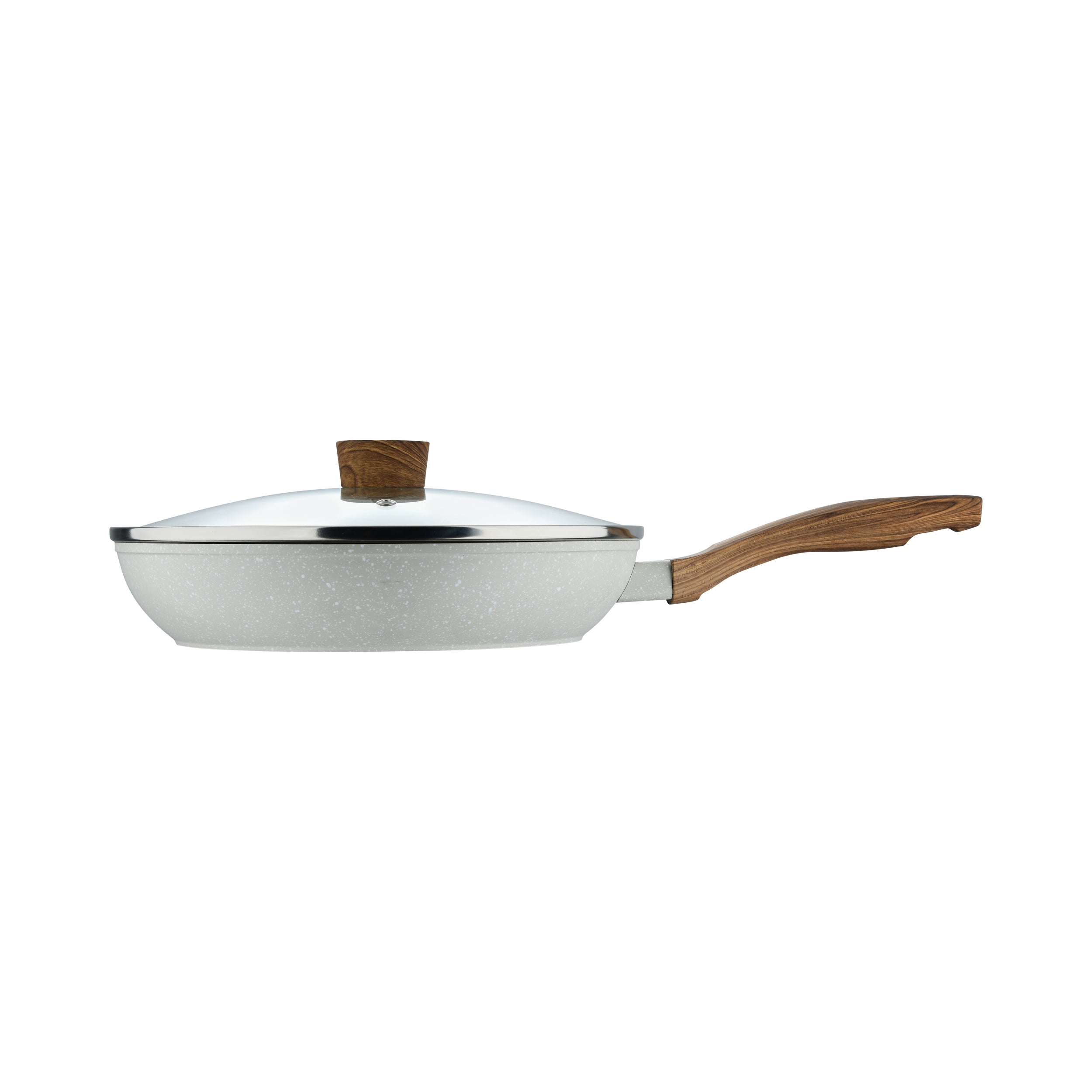 La tapa de vidrio templado del sartén grande te permite controlar tus cocciones sin levantarla, conservando el calor y los aromas. Además, su base reforzada es apta para todo tipo de estufas, incluida inducción, ofreciendo versatilidad total en tu cocina.