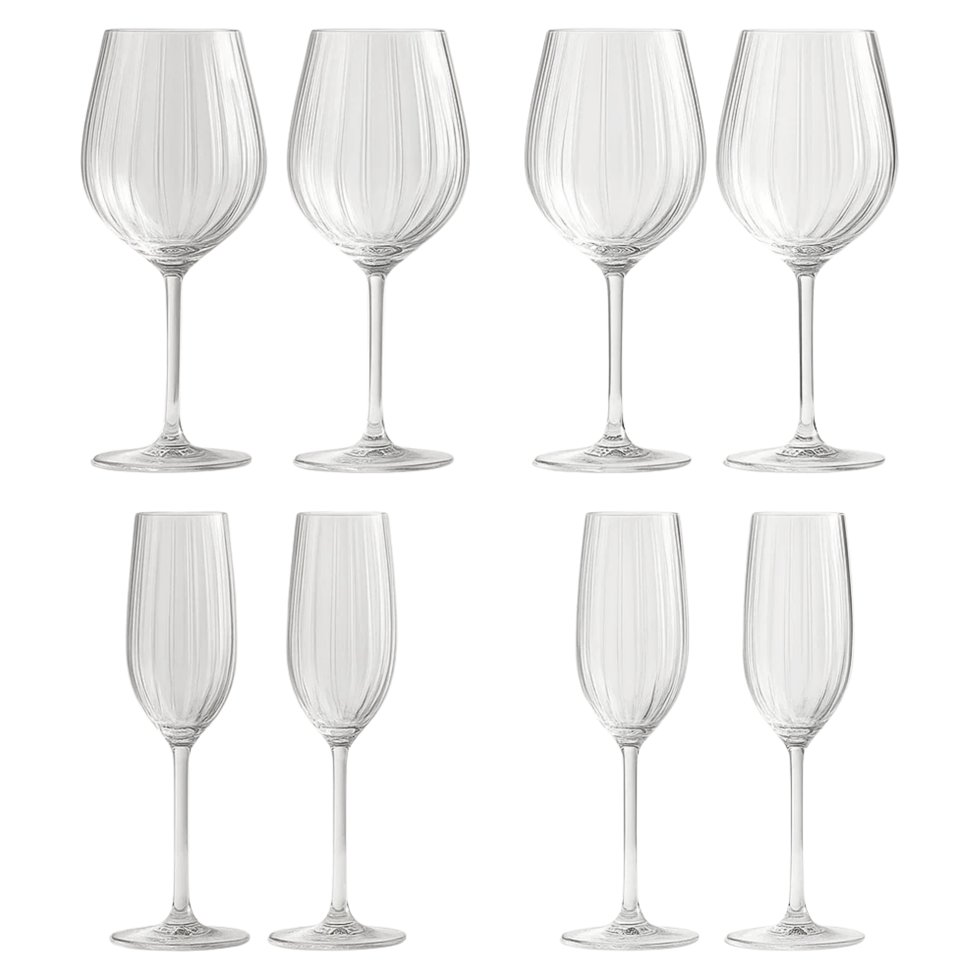 SET X 12 COPAS PLISSÉ (4 Copas Vino Blanco 38cl + 4 Copas Champagne 21cl +4 copas vino rojo plisse 50CL 17oz)