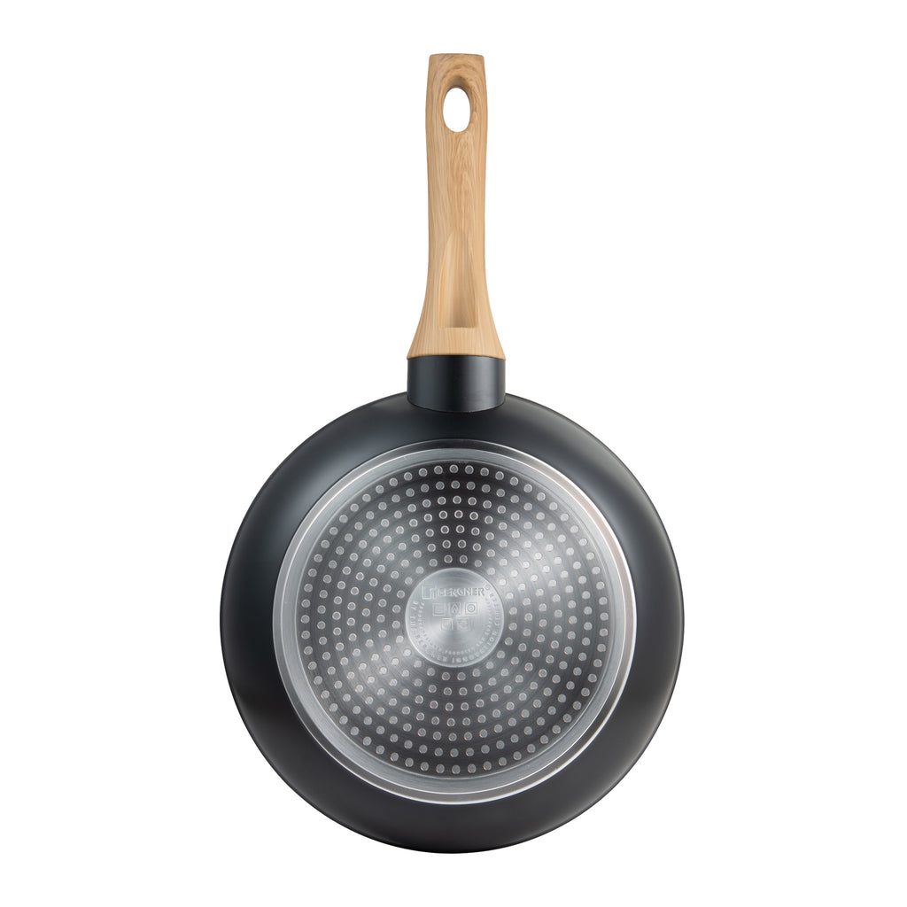 Sartén de 24 cm: De tamaño intermedio, esta sartén es muy versátil, adecuada para preparar comidas para dos o más personas. Perfecta para saltear, freír, hacer tortillas o cocinar vegetales, carnes o pescados. Su tamaño la convierte en una opción perfecta para el uso diario en la cocina, y su excelente distribución del calor garantiza una cocción uniforme.