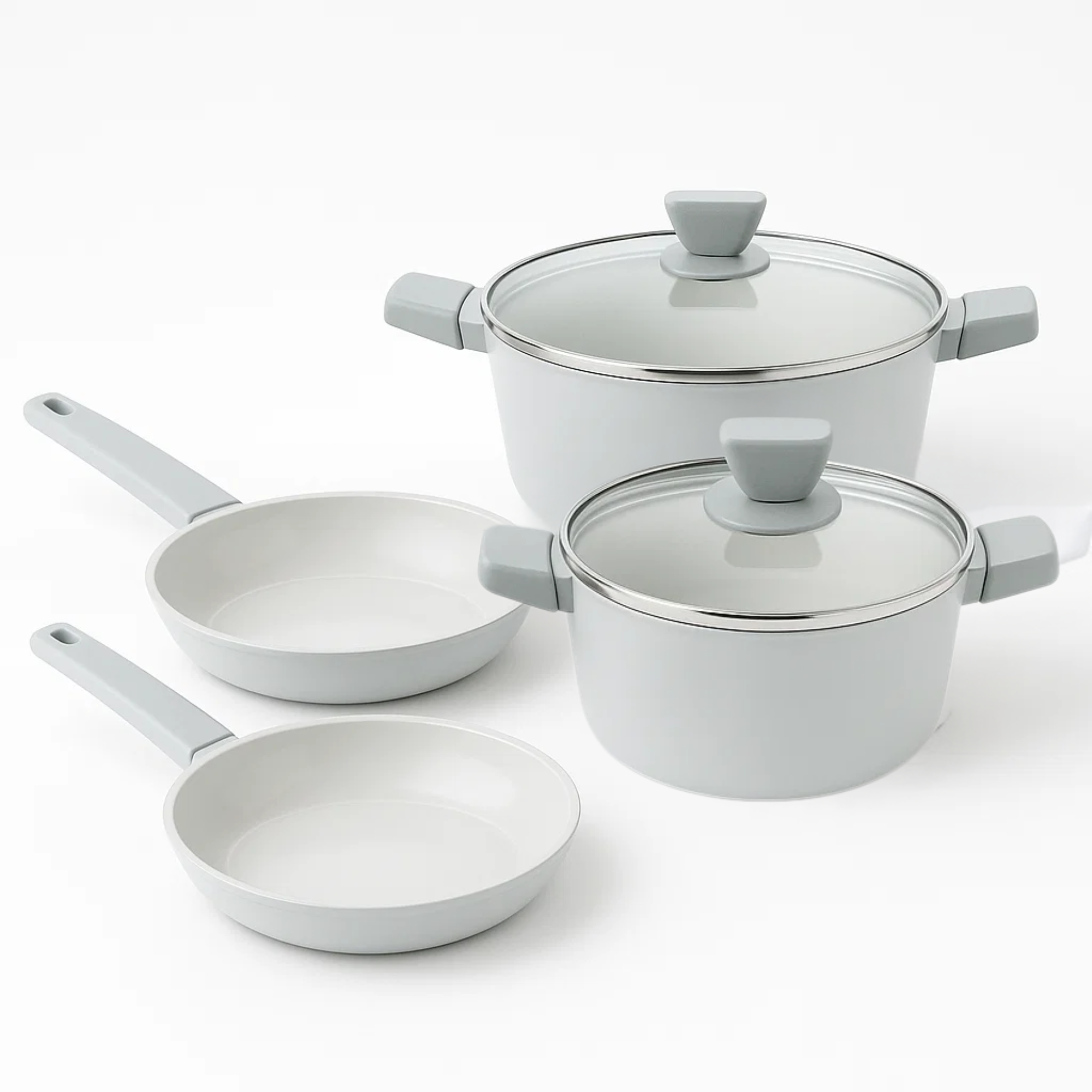 Set de cocina fabricado en aluminio forjado, material resistente que ofrece mayor durabilidad y una distribución homogénea del calor. Compatible con todo tipo de cocinas, incluida inducción, y diseñado para un uso diario eficiente. Incluye ollas con tapa para un mejor control de la cocción y cuenta con revestimiento libre de PFOA, garantizando una cocción más segura y fácil limpieza.