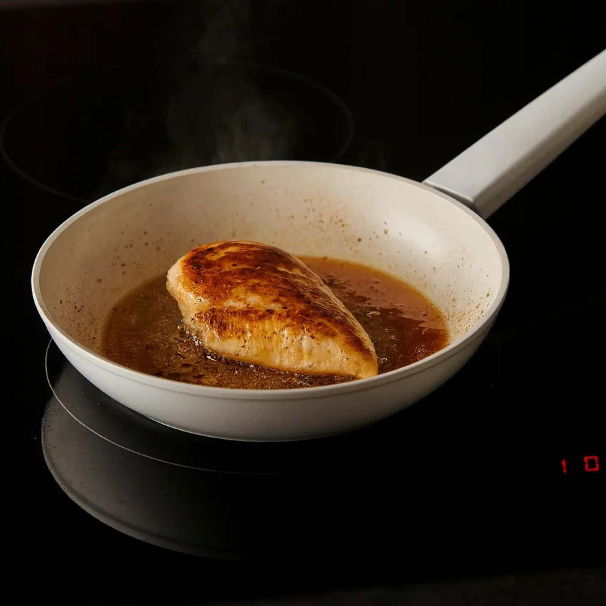 Tamaño versátil para saltear, sellar carnes y cocinar para 2–3 personas.