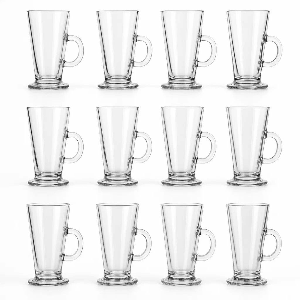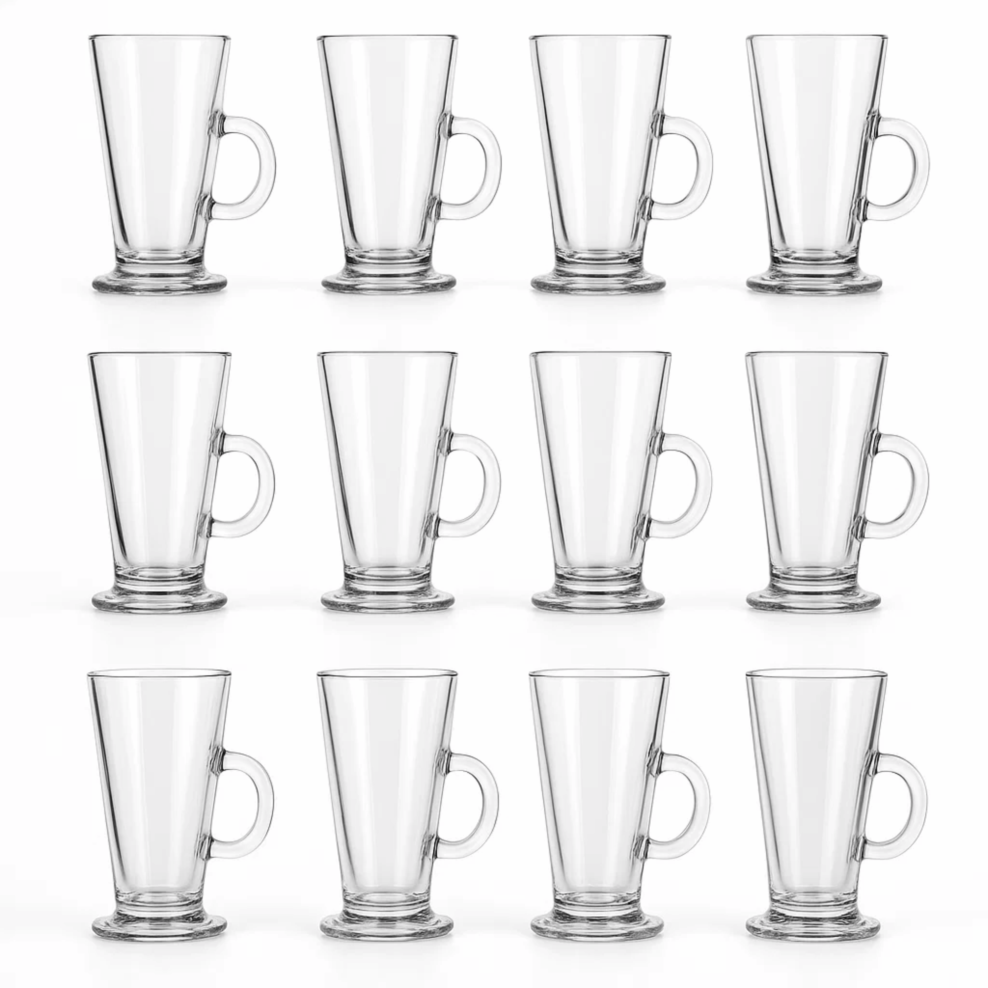 Set x12 Tarros de Vidrio Irish Coffee 266 ml – Vasos con Asa para Café, Té o Postres
