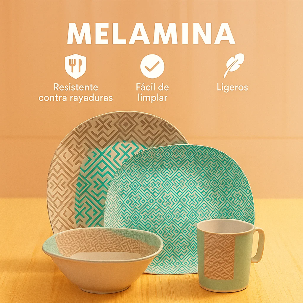 (La melamina es un tipo de material plástico compuesto por resinas que se caracteriza por ser dura y resistente al calor y al frío)